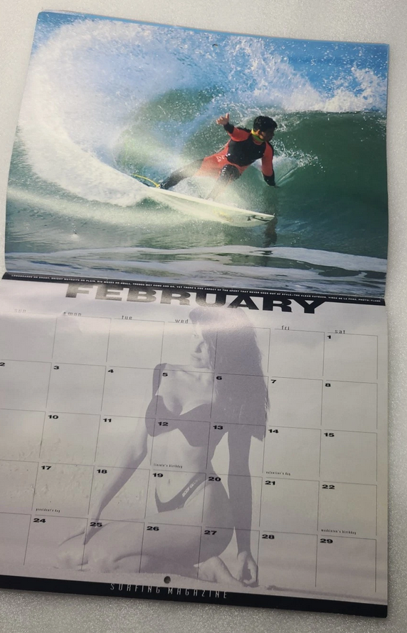 See photos for the overall condition. The calendar in good shape, the photos show the flaws it does have. Mainly a about half the pages have tiny pin hole in the middle. And the calendar has a slight bend near the spine.