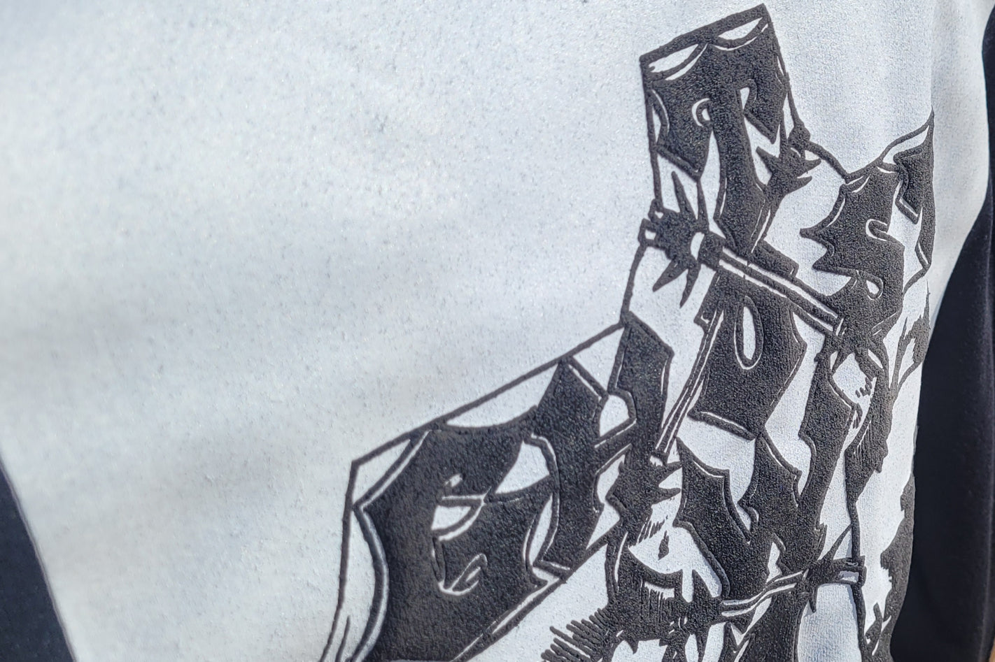 Ghost Town heavy-duty hoodie from Venice Street Wear. The print on the back of this hoodie has a raised "3-D" graphic (see photo).