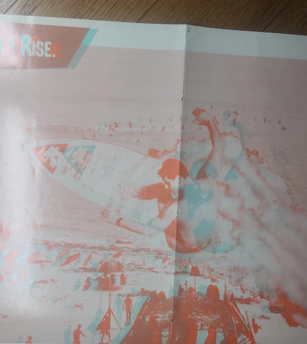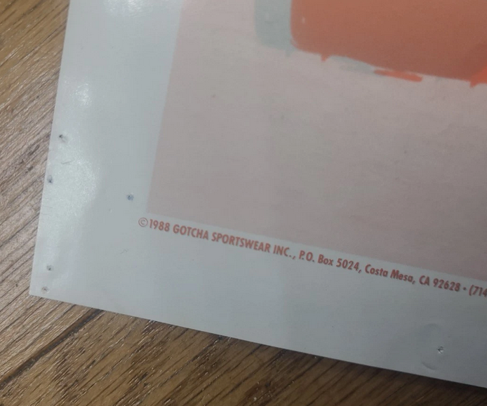 This is a pullout poster from one of the surf magazines from 1988. It is Gotcha Team Surfer Martin Potter. It is a 3-D poster. See the photos for the overall condition. It has pin holes from being hung on a wall. And some staple holes in the fold creases.
