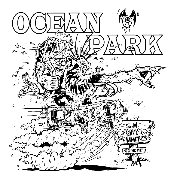 The Ocean Park Monster Skater t-shirts. The custom artwork on this cool shirt was done by Ed "Big Daddy" Roth before he passed away. Ed was the originator of this graphic style with his monster hot rodders back in the sixties.